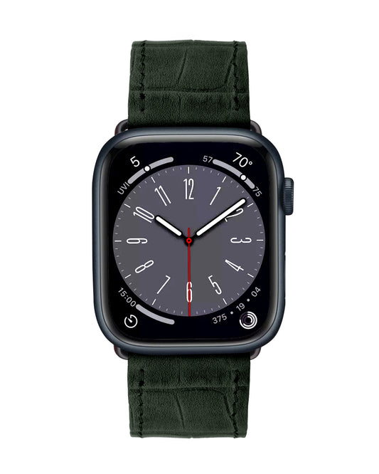 Ремінець для Apple Watch з телячої шкіри, тисненої під крокодила у темно-зеленому кольорі