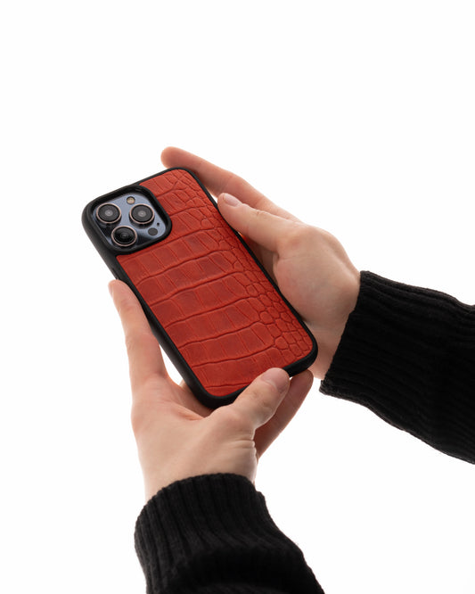 Чохол із рудого тиснення під крокодила на телячій шкірі для iPhone 15 Pro Max