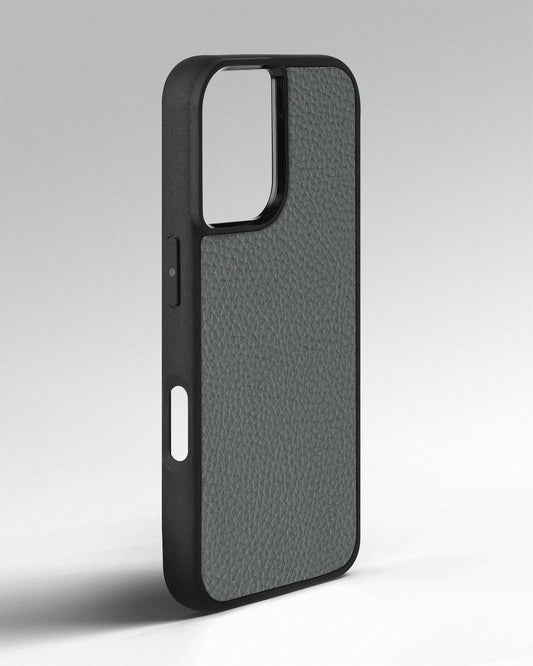 Чохол для iPhone 16 із шкіри купон в чорному кольорі з логотипом яблука