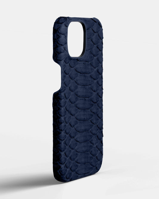 Шкіряний чохол з темно-синього пітона для iPhone 16