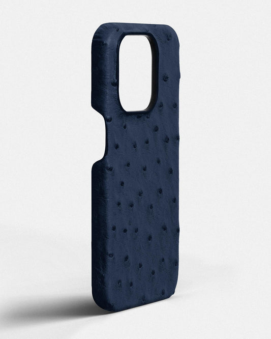 Шкіряний чохол з темно-синього страуса для iPhone 15 Pro Max
