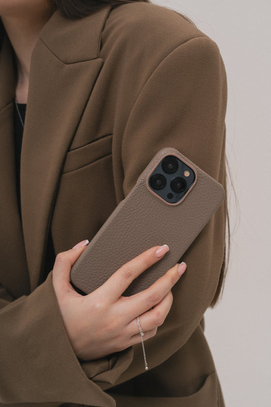 Світло-коричневий шкіряний чохол для iPhone 16
