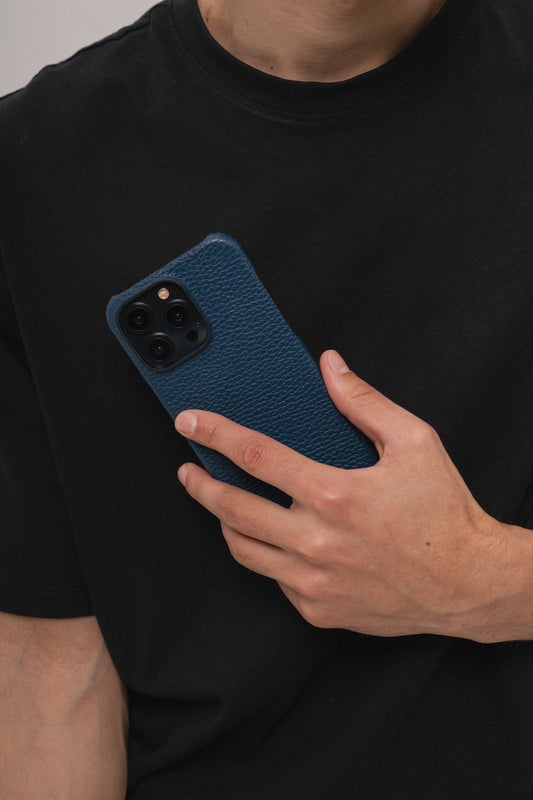 Темно-синій шкіряний чохол для iPhone 16 Pro