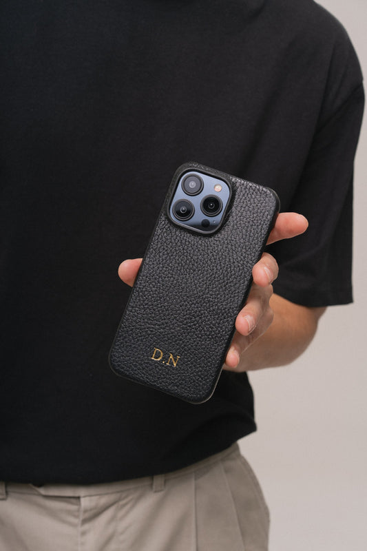 Чорний шкіряний чохол з телячої шкіри для iPhone 14