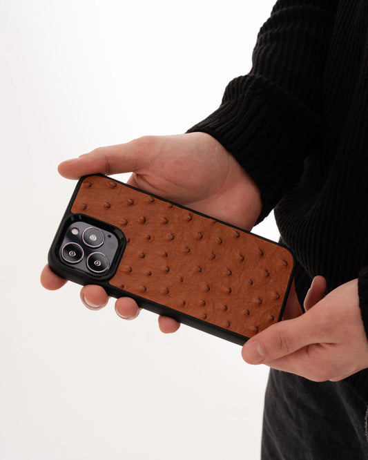 Чохол із коричневої шкіри страуса без фолікул для iPhone 13