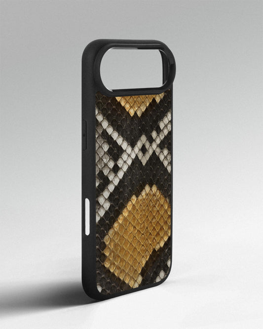 Чохол із сіро-жовтої шкіри пітона з дрібними лусочками для iPhone 16
