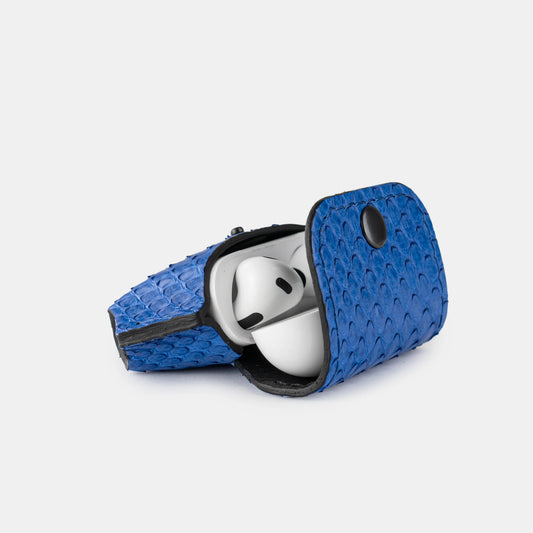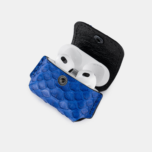 Чохол для AirPods із синьої шкіри пітона з дрібними лусочками