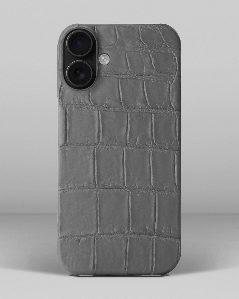 Сірий чохол обтягнутий шкірою крокодила для iPhone 16 Plus