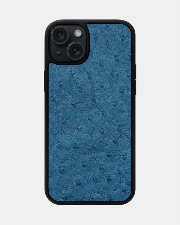 Чохол із блакитної шкіри страуса з фолікулами для iPhone 15 Plus
