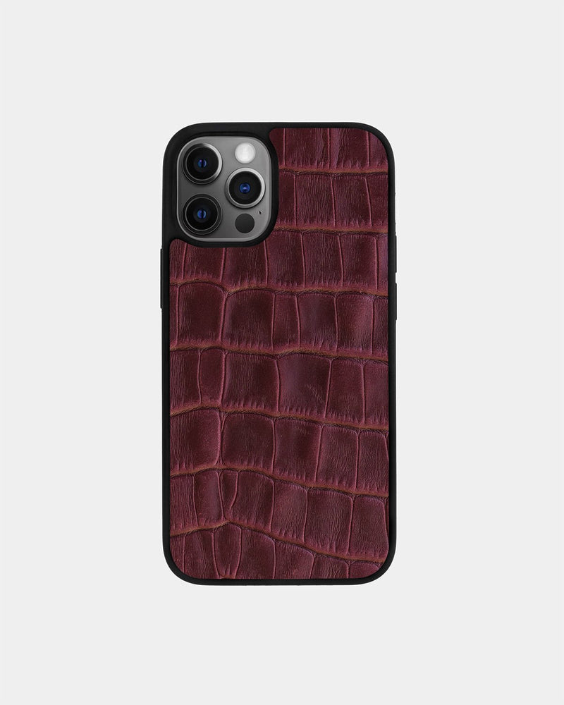 Чохол із бордового тиснення під крокодила на телячій шкірі для iPhone 12 Pro