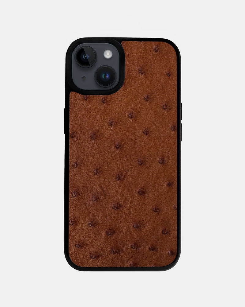 Чохол із коричневої шкіри страуса з фолікулами для iPhone 14 Plus