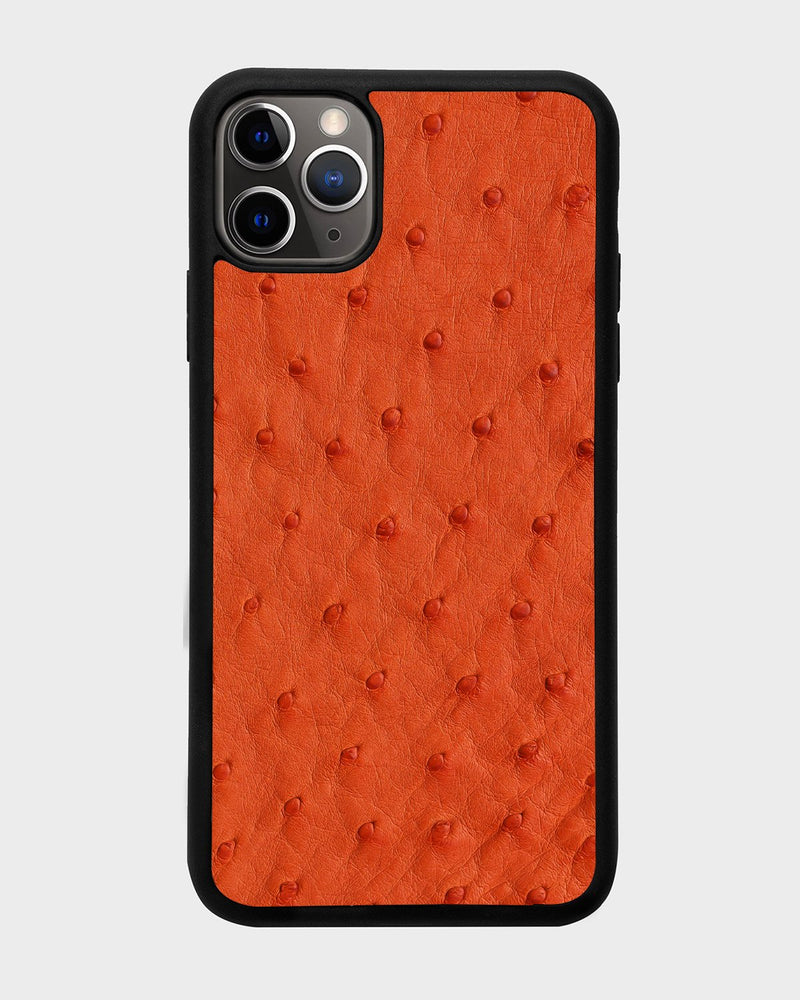 Чохол із помаранчевої шкіри страуса з фолікулами для iPhone 11 Pro Max
