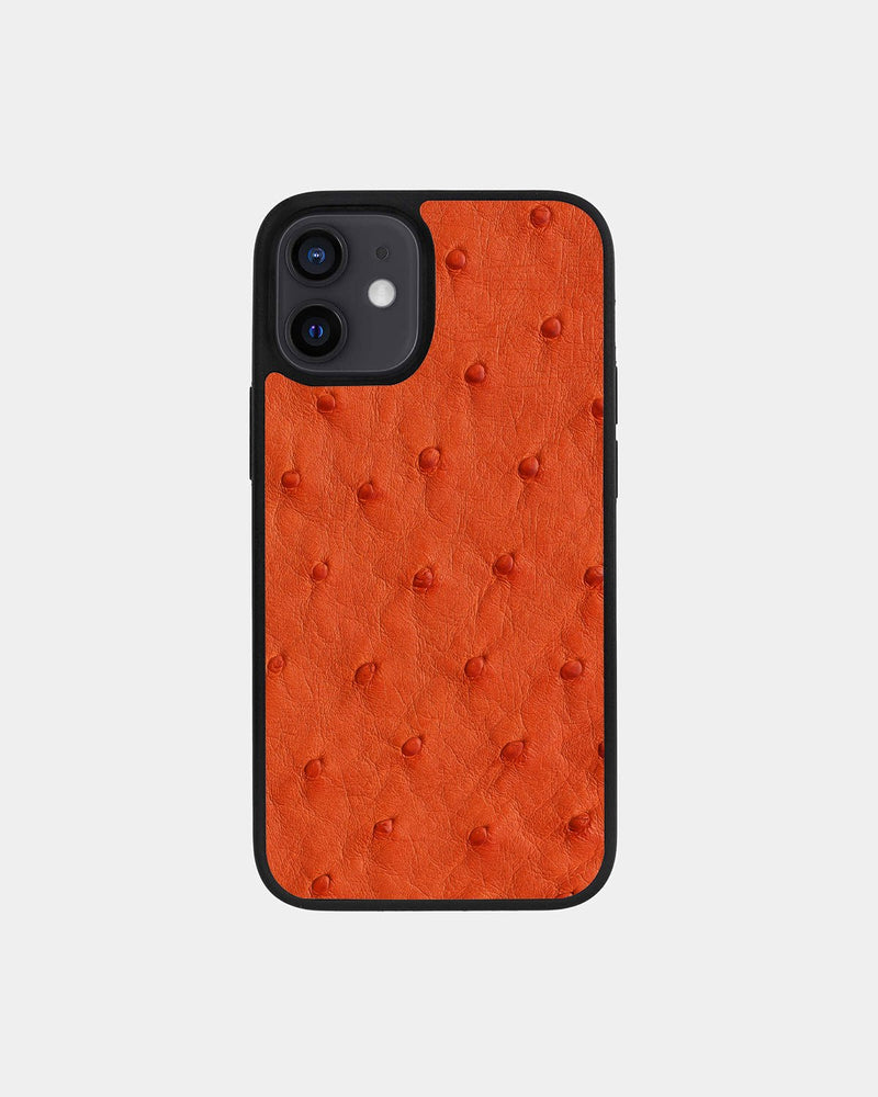 Чохол із помаранчевої шкіри страуса з фолікулами для iPhone 12