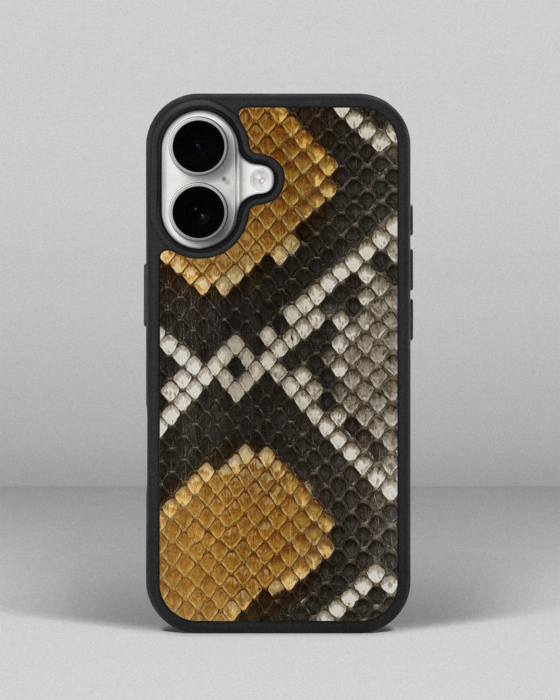 Сіро-жовта шкіра пітона відзначається своєю унікальною кольоровою гаммою і малюнком. Кожна лусочка має свої характеристики і додає чохлу вишуканості і стилю. Ви будете мати неповторний аксесуар, оскільки кожен чохол виготовляється з урахуванням природних варіацій шкіри пітона.