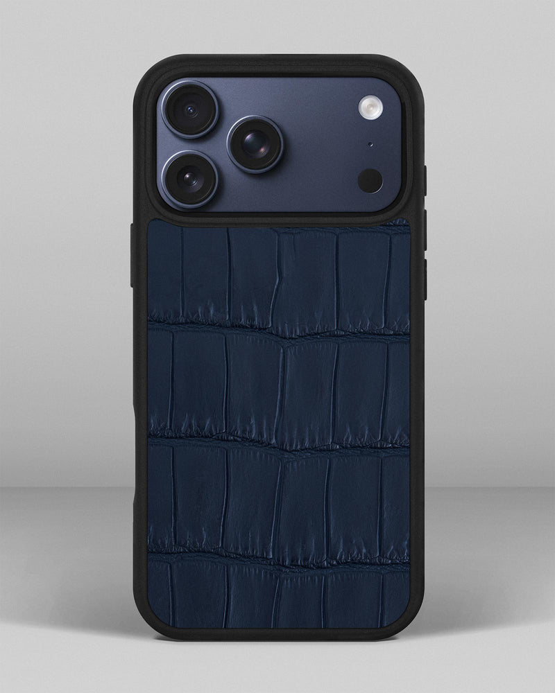 Чохол із темно-синьої шкіри крокодила для iPhone 17 Pro Max