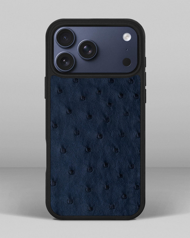 Чохол із темно-синьої шкіри страуса з фолікулами для iPhone 17 Pro Max