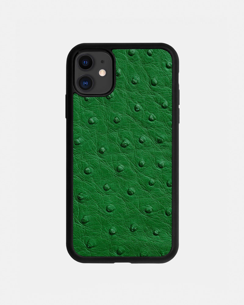 Чохол із зеленої шкіри страуса з фолікулами для iPhone 11