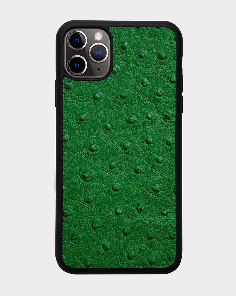 Чохол із зеленої шкіри страуса з фолікулами для iPhone 11 Pro Max