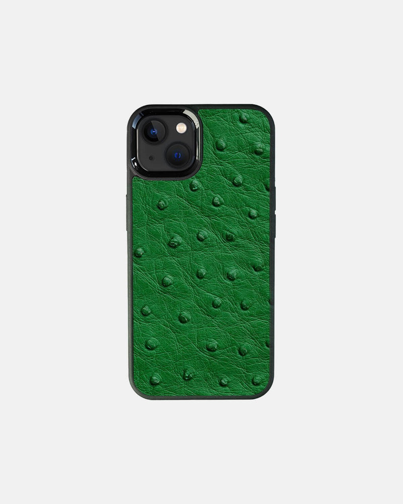 Чохол із зеленої шкіри страуса з фолікулами для iPhone 13