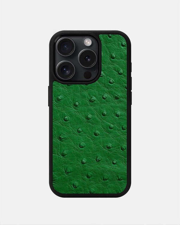 Чохол із зеленої шкіри страуса з фолікулами для iPhone 15 Pro
