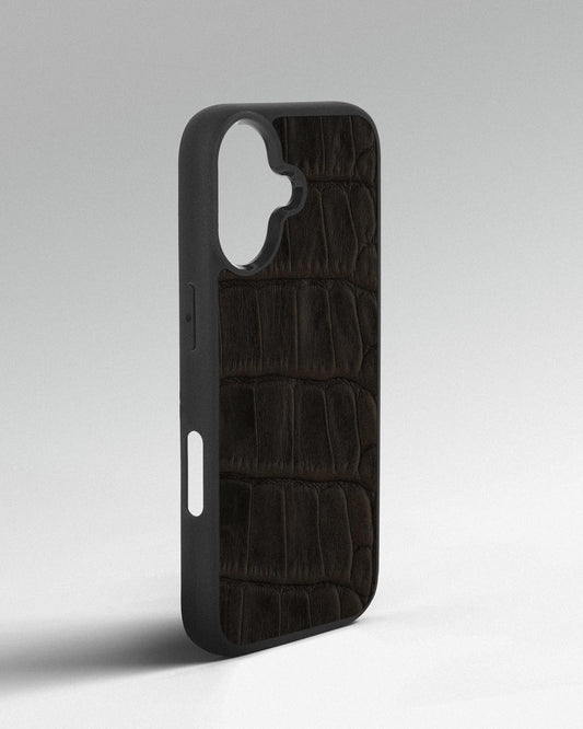 Чохол із темно-коричневого тиснення під крокодила на телячій шкірі для iPhone 16