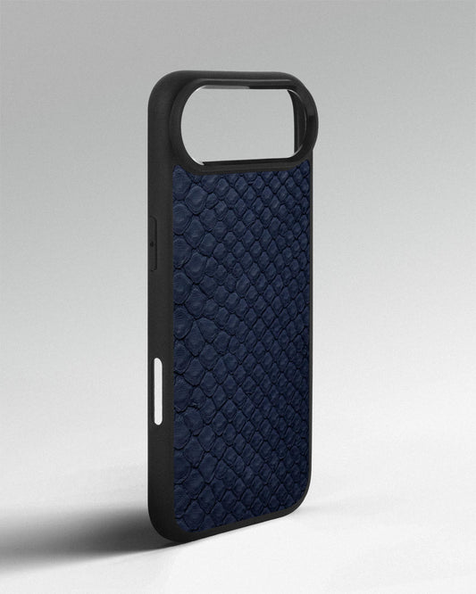 Чохол із темно-синьої шкіри пітона з дрібними лусочками для iPhone 15