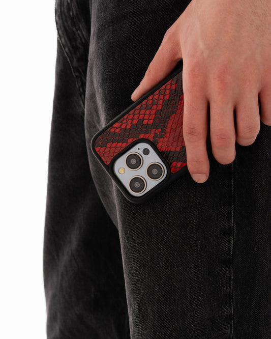 Чохол із червоної шкіри пітона з дрібними лусочками для iPhone 13