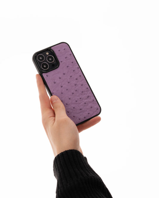 Чохол із фіолетової шкіри страуса з фолікулами для iPhone 15 Pro Max