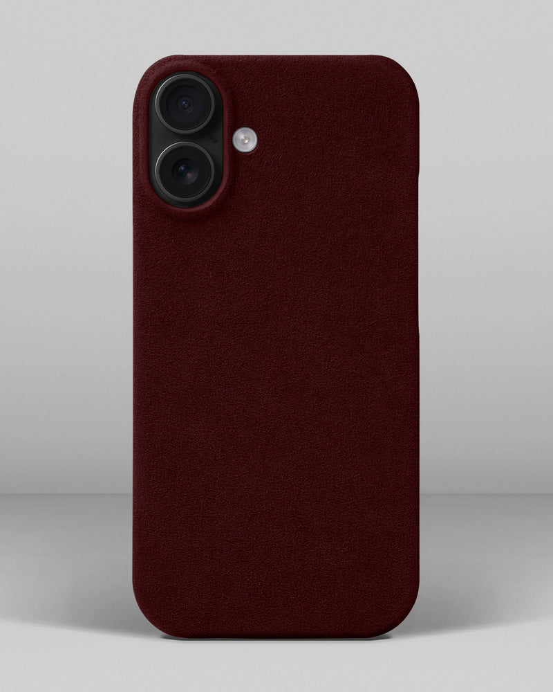 Бордовий чохол з алькантари для iPhone 16 Plus