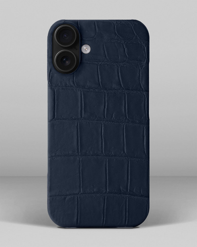 Темно-синій чохол обтягнутий шкірою крокодила для iPhone 16 Plus