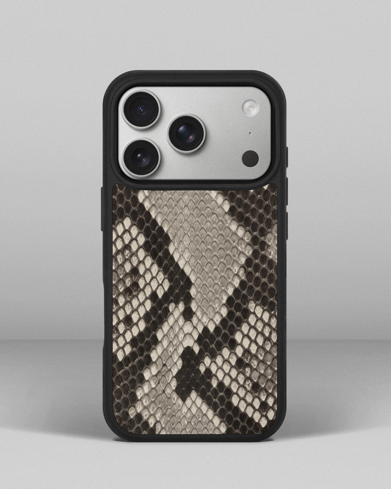 Чохол із чорно-білої шкіри пітона з дрібними лусочками для iPhone 17 Pro