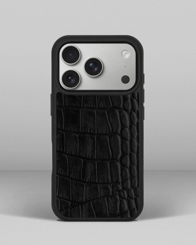 Чохол із чорного тиснення під крокодила на телячій шкірі для iPhone 17 Pro