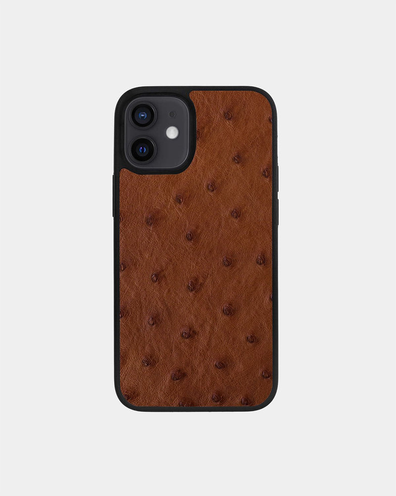 Чохол із коричневої шкіри страуса з фолікулами для iPhone 12
