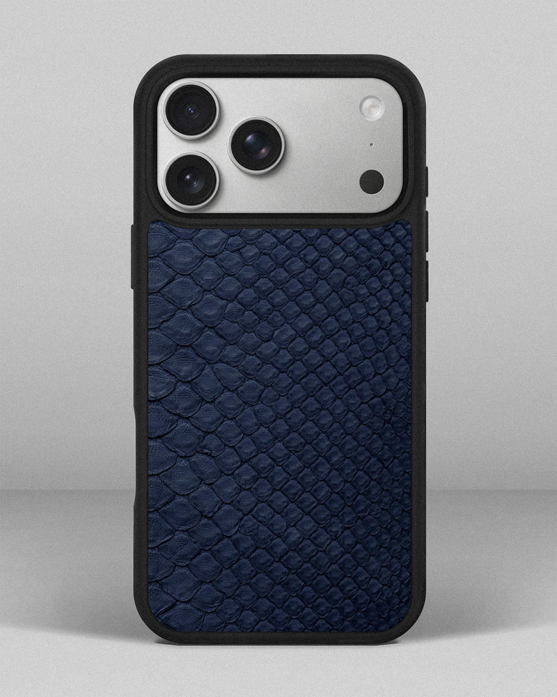 Чохол із темно-синьої шкіри пітона з дрібними лусочками для iPhone 17 Pro Max