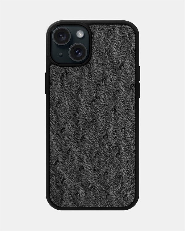 Чохол із темно-сірої шкіри страуса з фолікулами для iPhone 15 Plus